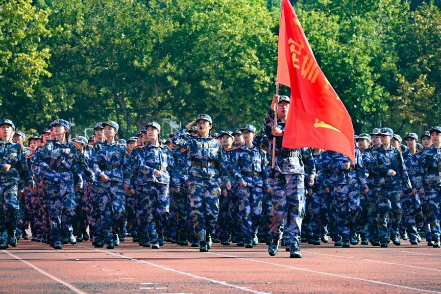 训练场的每一寸土地,都见证着蜕变。从齐步走时此起彼伏的口号声,到分列式上整齐划一的铿锵步点,从第一次踢正步的磕绊不稳,到最终展演时的利落有力。汗水浸透的迷彩服,是青春最鲜明的勋章。