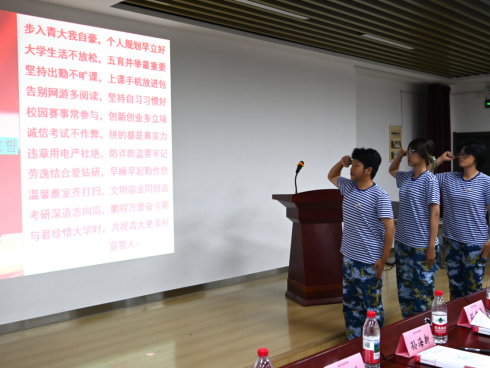 “步入青大我自豪,个人规划早立好”的铿锵誓词回荡报告厅,是新生对未来的承诺,亦是投身学业、立志成才的决心。